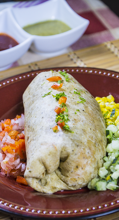 Served with your choice of protein in a flour or whole-grain tortilla with seasoned rice, beans, all-natural shredded cheese and Pico de Gallo along with lettuce, all-natural sauce sour cream and handmade guacamole.